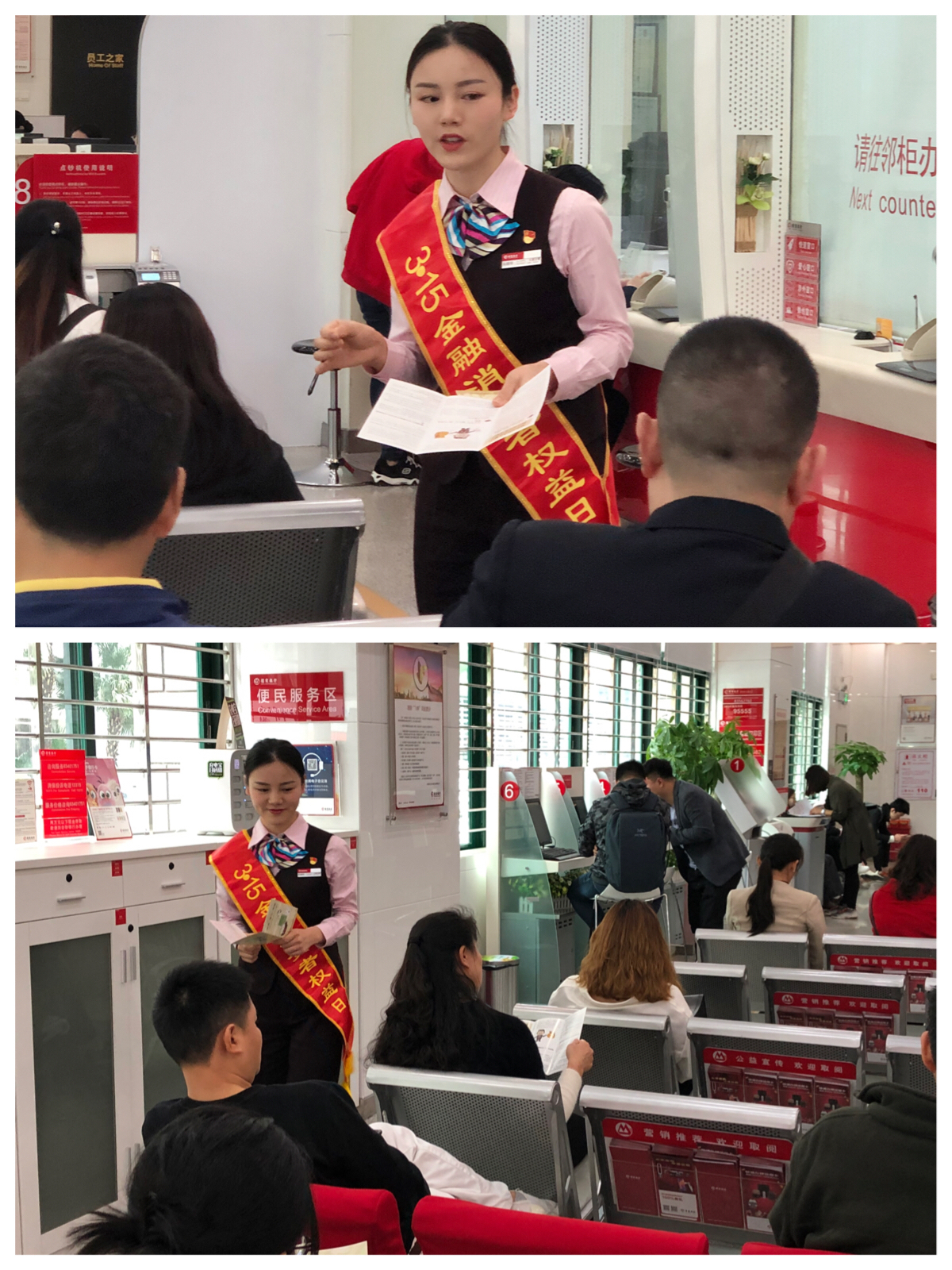 四、全行联动,举办3·15金融消费者权益保护方面客户反维护消费者权益防范洗钱风险专题宣传活动