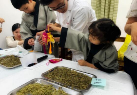 医生还向“小中医”们介绍了中医理疗知识,医生将人体的经络比喻成公交路线,将点按穴位所产生的身体感应点比喻成公交车,用形象生动的方式给小中医们讲解了人体的经络构成和中医推拿、刮痧等的科学原理。最后,小中医们还在指导下根据传统的中草药配方及功效制作了驱蚊香囊。这种别出心裁的“动手式”课程让“小中医”们进一步加深了对中医的理解和体验。