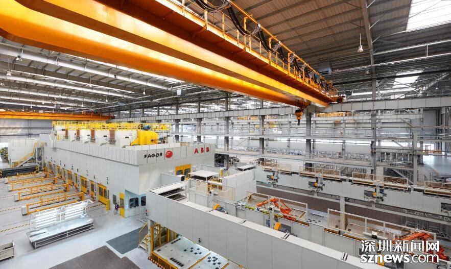 车身车间总占地面积9.9万㎡,采用互联机器人、柔性NC定位系统、柔性夹具切换系统、自动化输送系统,标准化工艺体系、三层环网智能管理系统、国际安全标准,主线自动化率95%;采用柔性智能生产线,在同一条生产线可完成8个不同的车型无节拍损失自动切换和混线生产。