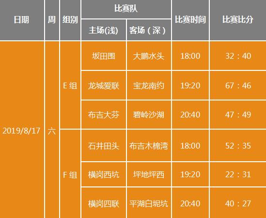 东部赛区当晚共有6场精彩比赛,2个场地同时开赛。当中大鹏水头和坂田围的比赛异常激烈,经过六十分钟的的激烈鏖战,大鹏水头队以40比32获胜。各支队伍怀着必胜的信念,器宇轩昂,敢打敢拼。比赛最后,大鹏水头、龙城爱联、碧岭沙湖、石井田头及坪地坪西、横岗四联队6支队伍获得东部赛区首战胜出。