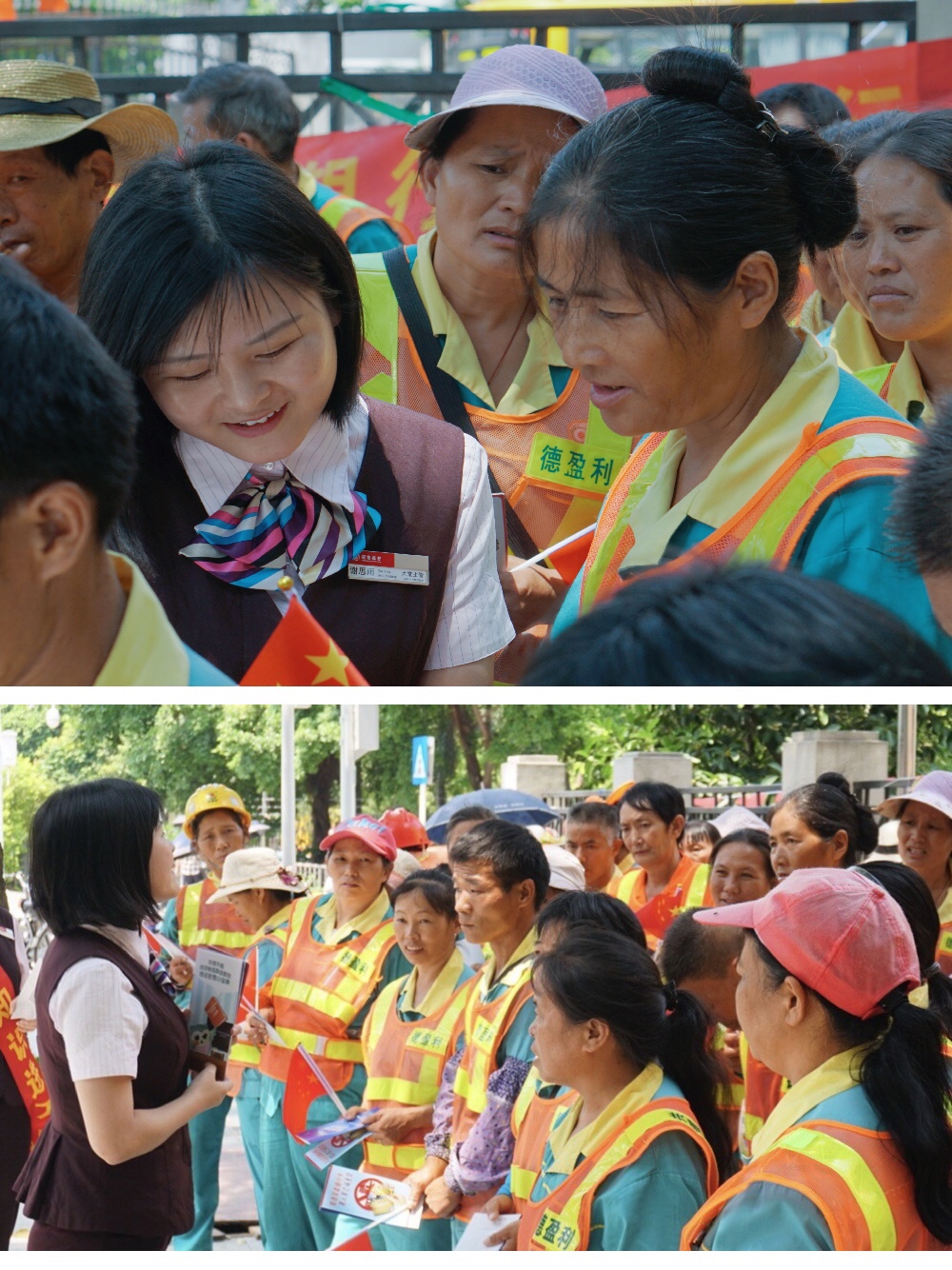 时代广场支行走近环卫工人,以金融知识宣教活动实现“招行红”与“环卫橙”的美丽相遇。