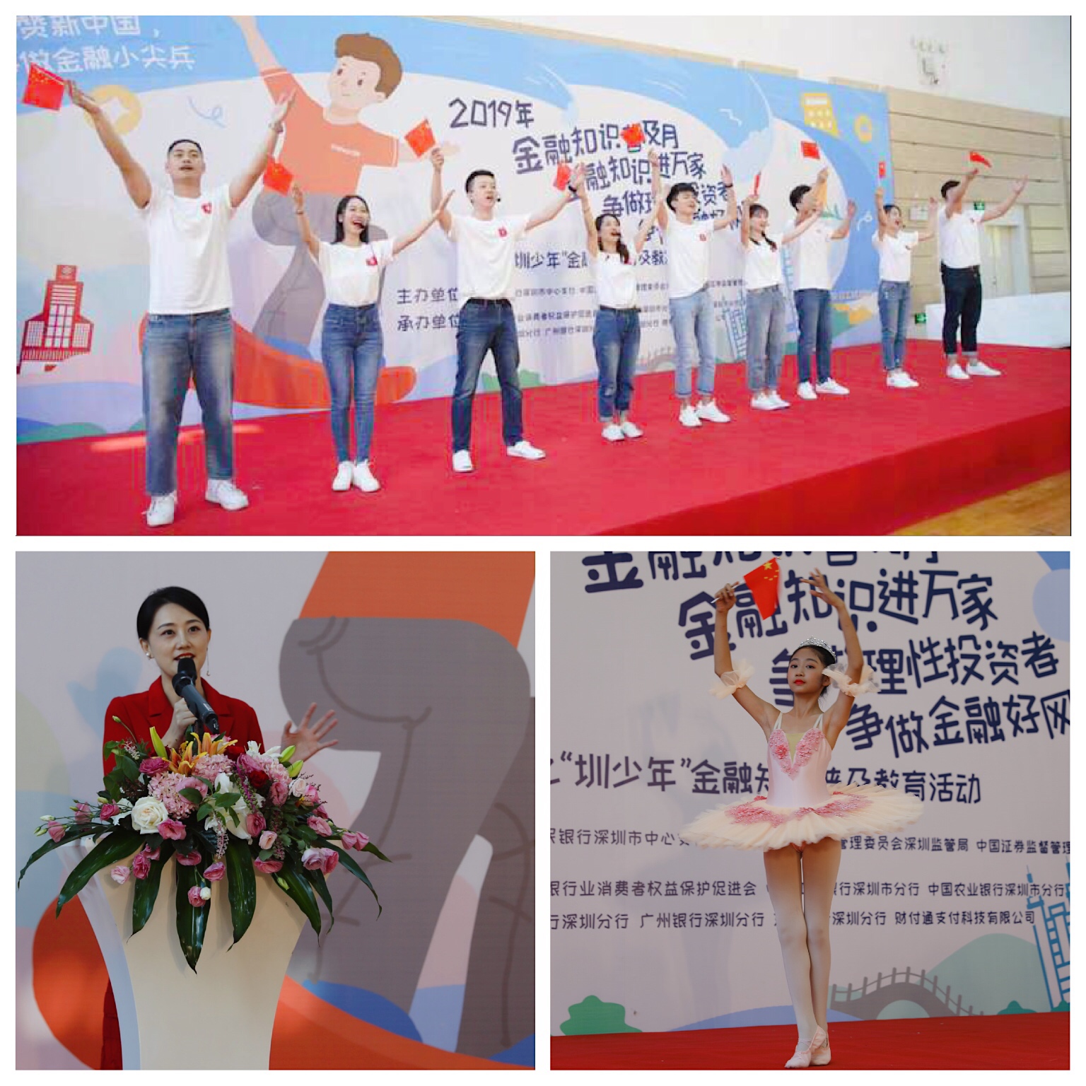9月22日,中国人民银行深圳市中心支行、中国银行保险监督管理委员会深圳监管局、中国证券监督管理委员会深圳监管局、深圳市银行业消费者权益保护促进会,联合招商银行深圳分行等九家金融机构在深圳市青少年活动中心成功举办了2019年“金融知识普及月金融知识进万家争做理性投资者争做金融好网民”之首届“圳少年”金融知识普及教育活动。招商银行深圳分行精心策划惊喜开场快闪、启动仪式等环节,助力青少年金融知识普及教育。