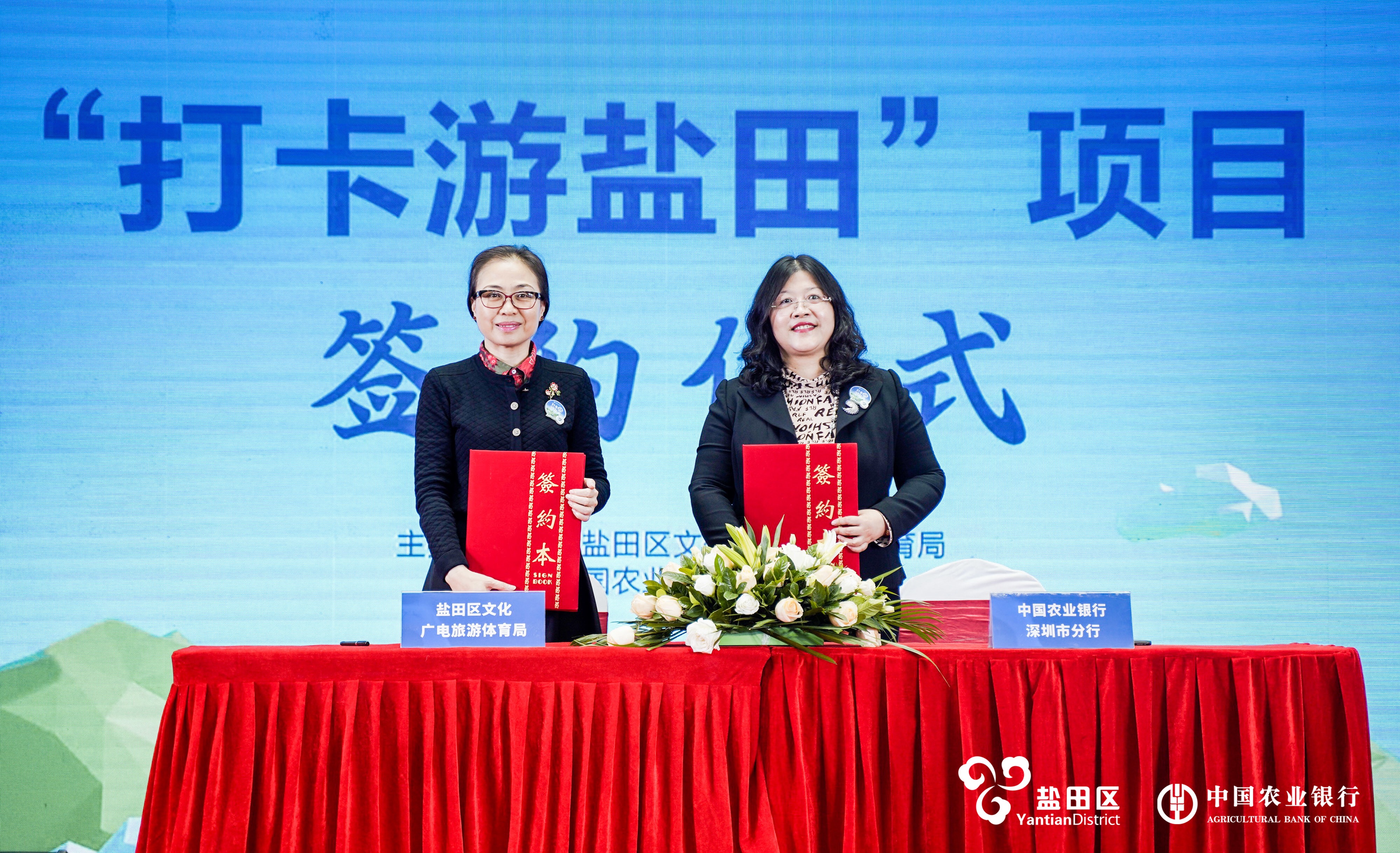 2019年12月17日上午,由深圳市盐田区文化广电旅游体育局主办,农行深圳分行承办的盐田区第二期“打卡游盐田”活动发布会在盐田ONE MALL商场举行。盐田区副区长罗毅、盐田区文化广电旅游体育局局长彭洁、盐田区文化广电旅游体育局副局长王智华、农行深圳分行副行长魏秉全、农行深圳分行信用卡中心总经理张珂等相关领导出席发布会。会上,盐田区副区长罗毅、农行深圳分行副行长魏秉全先后做开幕致辞与活动方案,盐田区文化广电旅游体育局局长彭洁、农行深圳分行信用卡中心总经理张珂现场签署了《盐田区第二期“打卡游盐田”活动合作协议》,宣告活动正式落地。