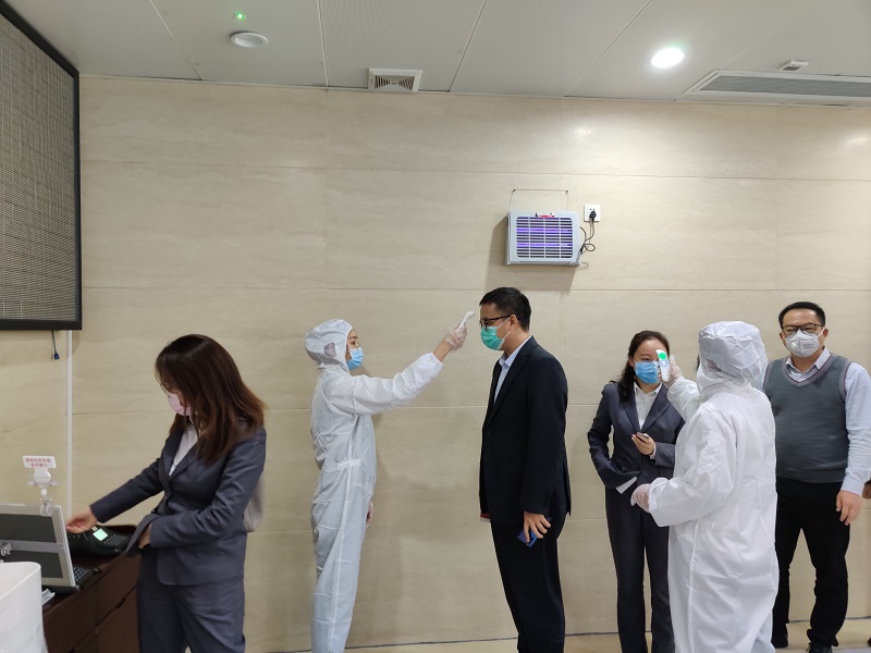 对上班员工及到访的客户例行体温探测
