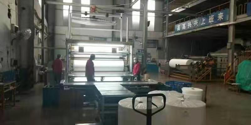 企业加班加点进行防疫设备原材料无纺布生产