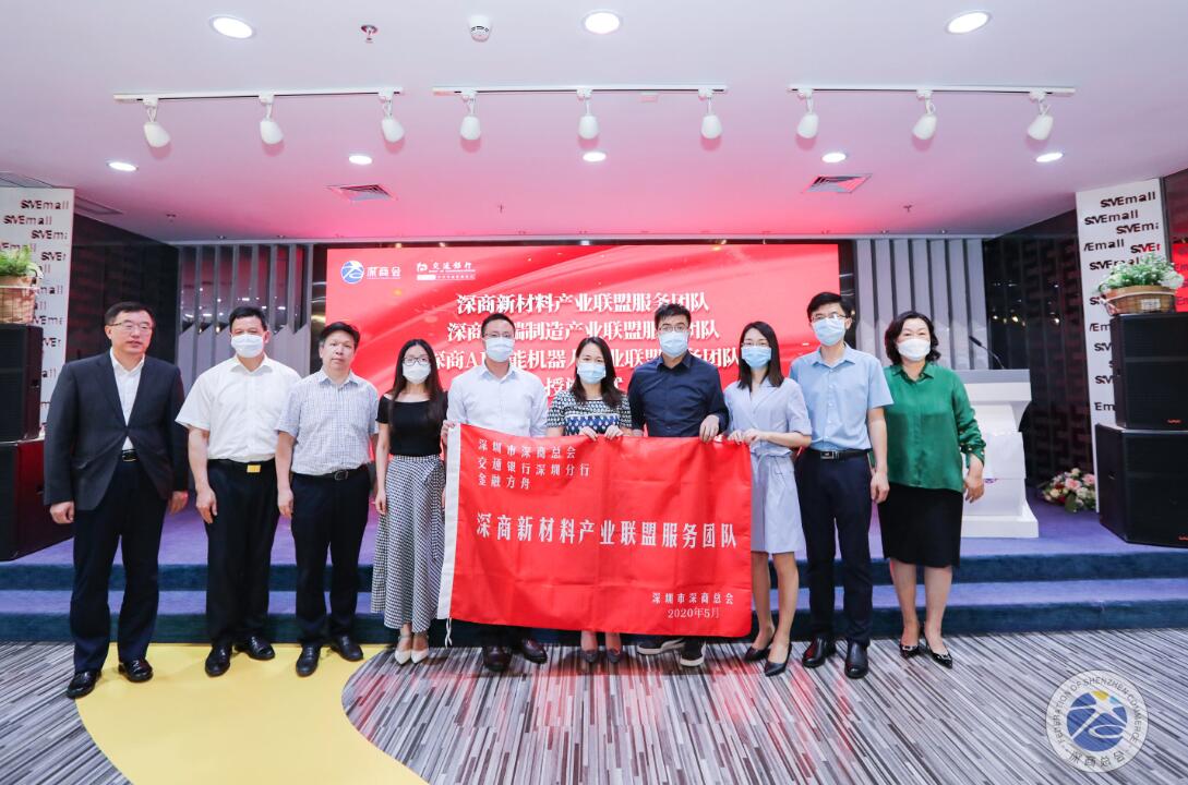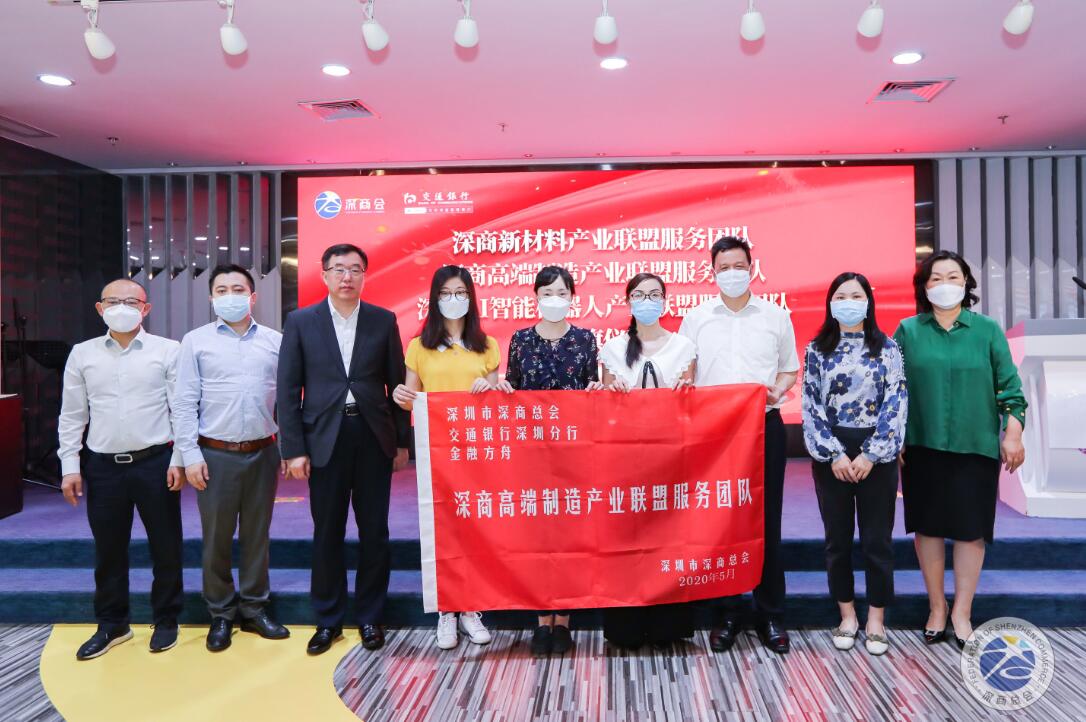 活动启动仪式上,深圳市地方金融监管局巡视员肖志家、交通银行深圳分行胡刚副行长、深圳市深商总会林慧会长为交通银行三支专业服务团队授予“深商产业联盟服务团队”旗帜,标志着深圳交行与深商总会、深商产业联盟翻开合作的崭新篇章。深圳交行和深商总会,将持续聚焦高端先进制造、战略新兴产业、未来产业,共同开展“暖企行”企业调研活动,各展其能、协同作战,为深商新材料、深商高端制造、深商AI智能机器人等产业联盟全方位倾斜资源,提供更有效率、更有活力、更加优质的金融支持,助推企业加快复工复产、达产增产。