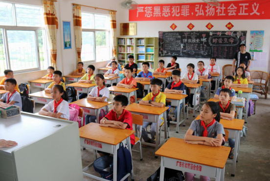 图片为深圳分行团委到东溪村小学开展志愿者活动,学生们认真上课