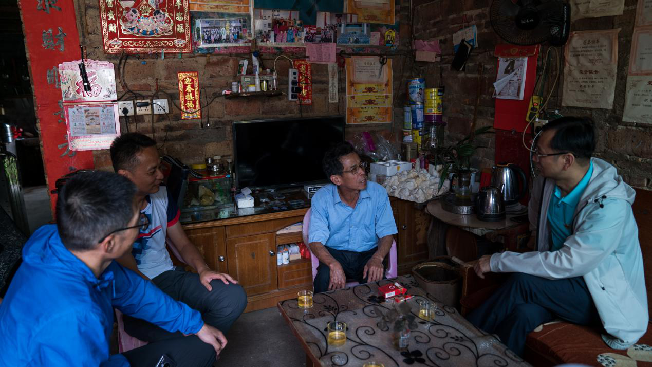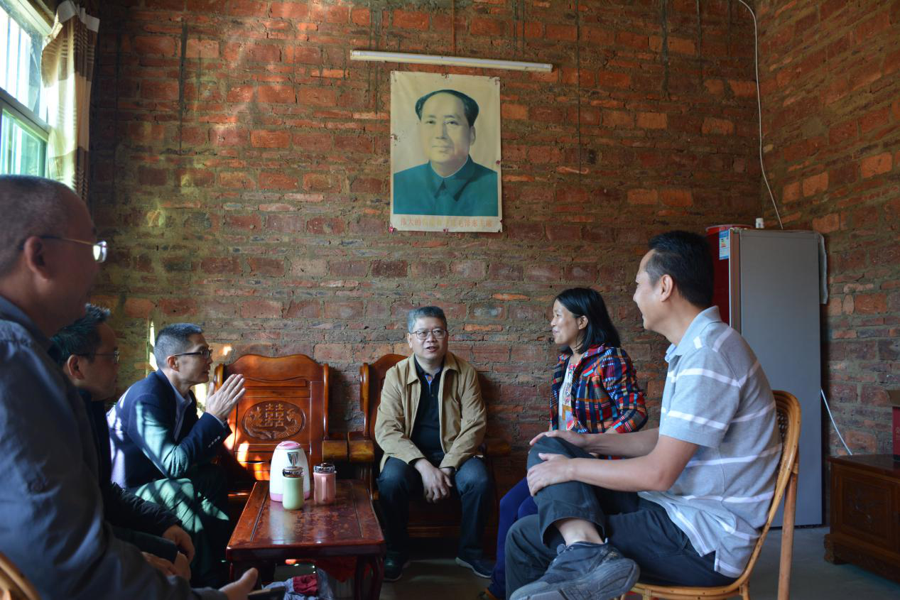 图片为深圳分行邹春平副行长、分行党群工作部总经理王秀海、驻村第一书记谢刚慰问贫困户