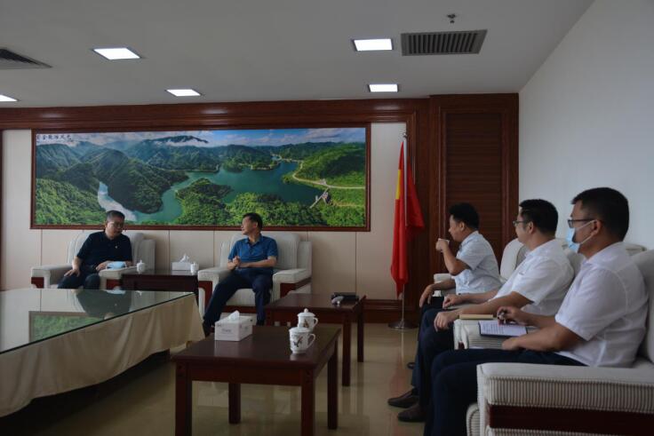 图片为深圳分行党委书记、行长方琦在紫金县与紫金县委书记廖继聪面谈,深圳市龙华区对口帮扶紫金指挥部总指挥、紫金县委常委谢秉波、南岭镇李威书记参加会见