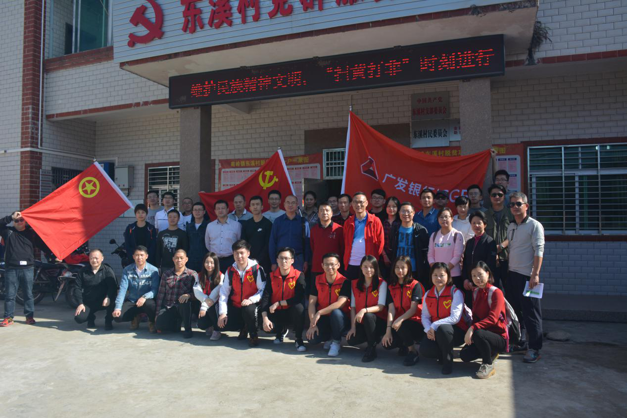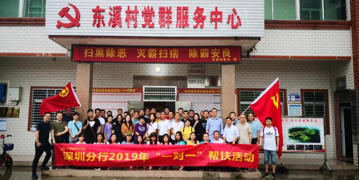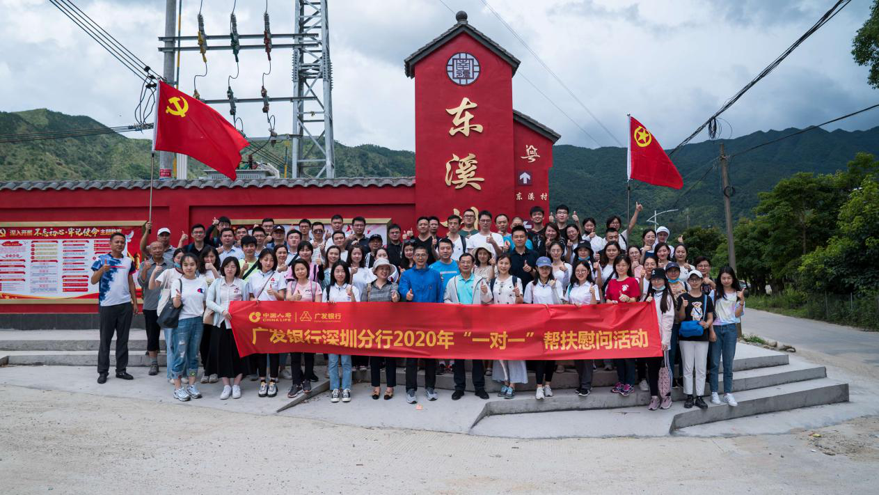 见圳客户端·深圳新闻网2020年6月22日讯 党的十八大以来,以习近平同志为核心的党中央坚持把脱贫攻坚作为全面建成小康社会的底线任务和标志性指标,作出了一系列重大部署。党的十九大后,党中央把打好精准脱贫攻坚战作为全面建成小康社会的三大攻坚战之一,持续高位推进,脱贫攻坚力度之大、规模之广、影响之深前所未有,取得了决定性成就。在脱贫攻坚的滚滚洪流中,广发银行深圳分行(以下简称“深圳分行”)以党建促脱贫攻坚,从2016年5月开始,在定点扶贫的河源市紫金县南岭镇东溪村深耕细作,打好产业扶贫、金融扶贫、消费扶贫、电商扶贫的“组合拳”,精准扶贫工作结出累累硕果,东溪村在2019年底率先实现贫困户全部脱贫、贫困村全面出列。