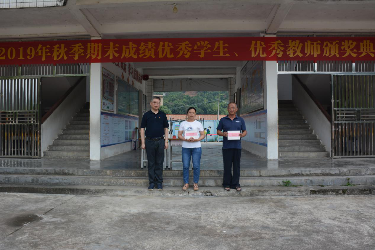 图片为深圳分行党委书记、行长方琦为东溪小学的优秀教师和校长颁发奖金