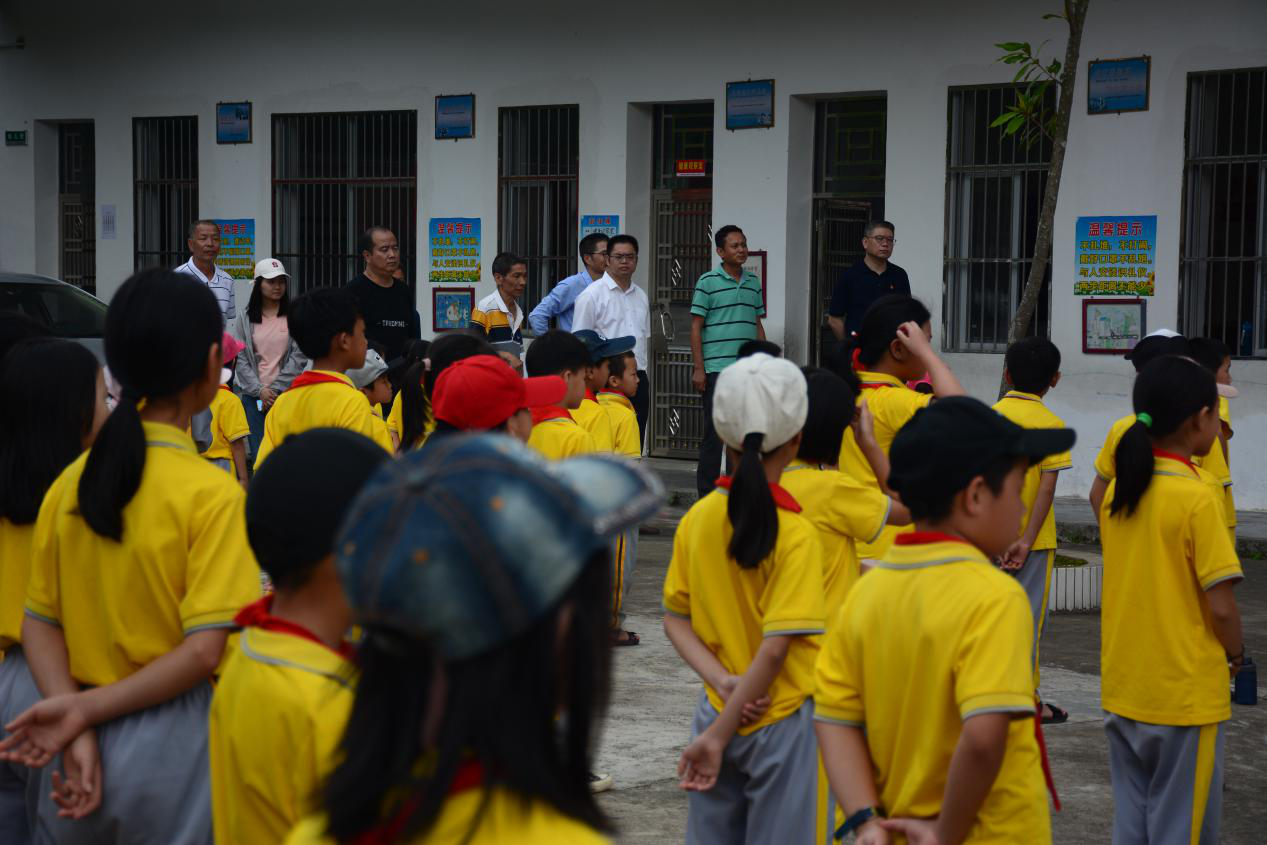 图片为深圳分行党委书记、行长方琦代表分行向东溪村小学捐赠16.2万用于围墙和操场的修缮