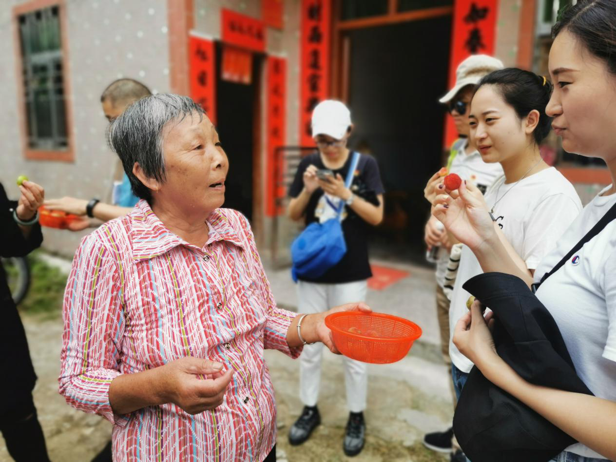图片为东溪村贫困户分享自己种植的李子给前来看望她的深圳分行员工