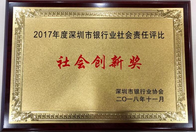 2018年11月,中信银行深圳分行获2017年度深圳市银行业社会责任评比社会创新奖。