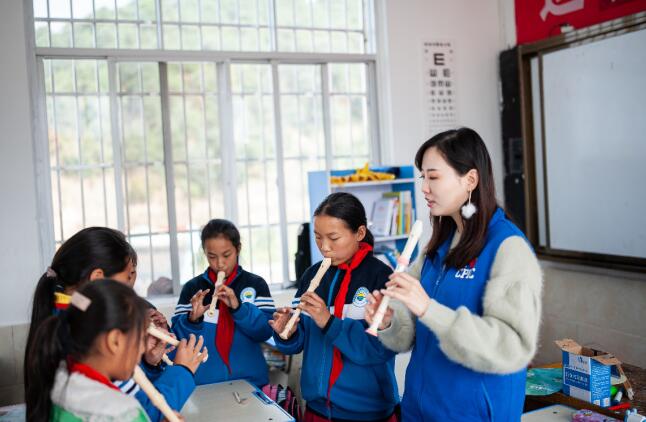 当音乐老师带着吉他出现在课堂上时,孩子们的眼里充满了光,这是他们第一次看到了真实的吉他,还在它的伴奏下唱歌。因缺乏专业音乐老师,学校音乐器材室里的乐器也是常年不见天日。这次,音乐老师翻出了长久没用的大小鼓,挑人、训练,组建了学校里的第一鼓队,这支鼓队可以像模像样地为学校活动预热了。
