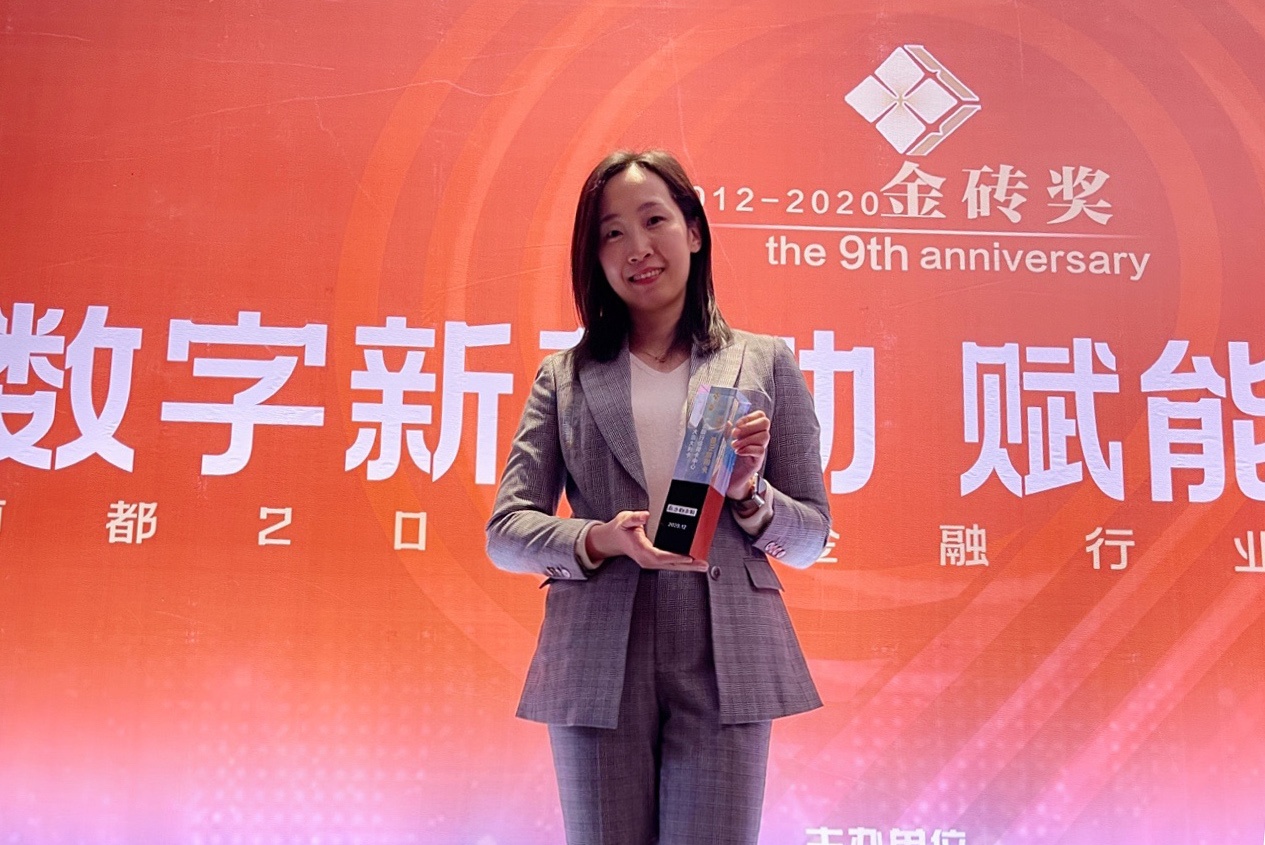 广发信用卡中心互联网创新项目组副总经理郑湜上台领奖