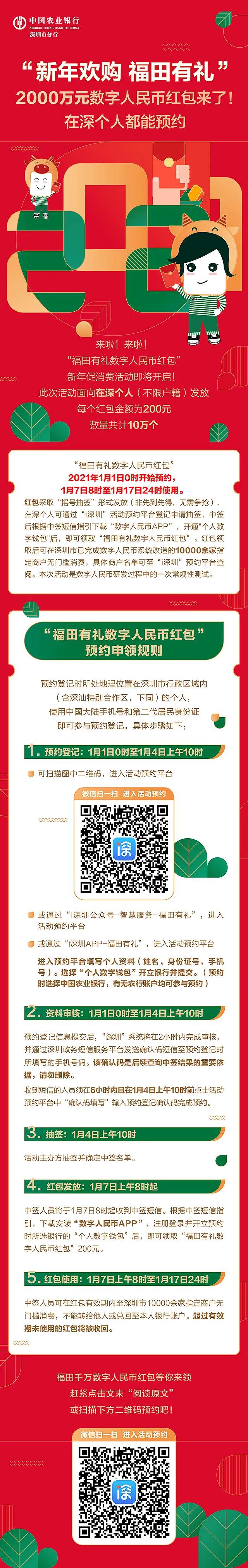 “新年欢购 福田有礼”2000万元数字人民币红包来了!在深个人都能预约