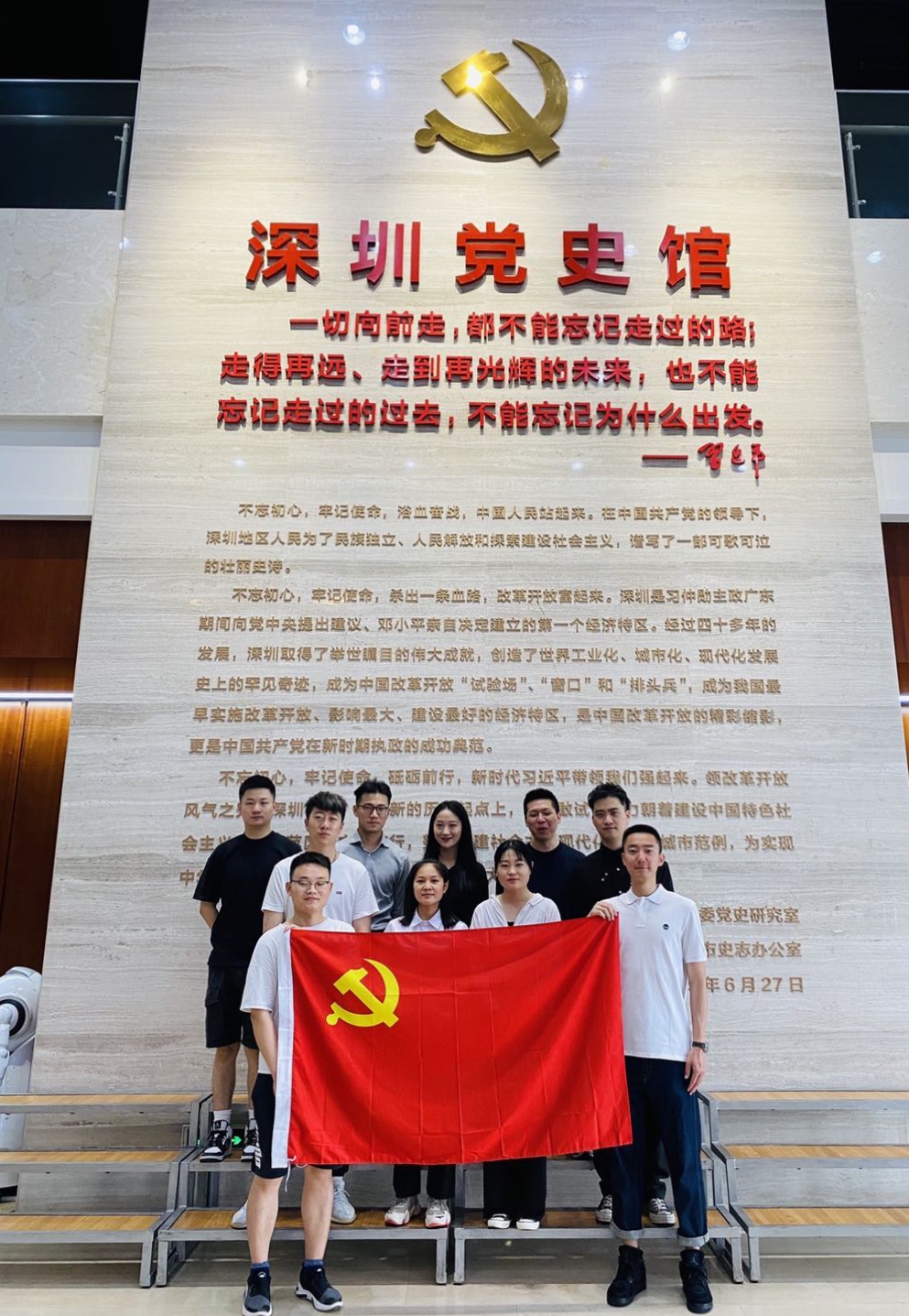 离开陵园,浦发银行深圳分行的党员们在深圳党史馆向青年员工介绍了深圳地区在中国共产党领导下进行革命、建设和改革的不懈奋斗史以及取得的辉煌成就。大家一起在党史馆门口诵读,“一切向前走,都不能忘记走过的路;走得再远、走到再光辉的未来,也不能忘记走过的过去,不能忘记为什么出发”。