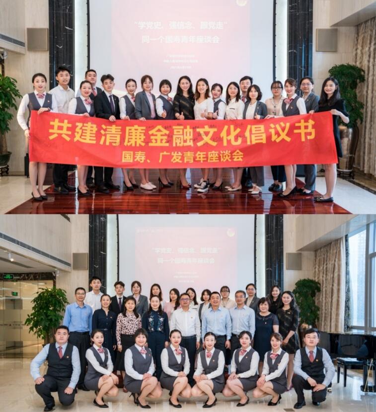 据了解,5月19日,广发银行深圳分行联合中国人寿深圳市分公司开展“学党史、悟思想、办实事、开新局”青年座谈会。广发银行深圳分行党委书记、行长王家铭,党委委员、副行长旷波,中国人寿保险深圳市分公司党委委员、副总经理吴赛佩出席了此次座谈,并与会全体成员共同签署了《金融清廉文化倡议书》。