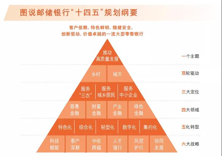 8月27日,于发布半年报同时,邮储银行公布了该行“十四五”规划纲要。规划纲要明确提出,邮储银行“十四五”时期的战略目标是以金融科技赋能高质量发展,加速业务模式转型,搭建智能风控体系,提升价值创造能力,打造服务乡村振兴和新型城镇化的领先的数字生态银行。