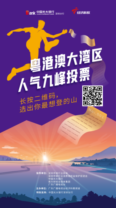 本次活动还将聚焦金融知识宣传。9月1日,按照监管部门及总行的统一部署,光大银行深圳分行正式启动2021年“金融知识普及月金融知识进万家争做理性投资者争做金融好网民”活动。“2021粤港澳大湾区全民登高系列赛”将通过形式多样的金融知识教育宣传及强劲有力的金融服务支持措施,聚焦青少年、老年人、农民、务工人员和残疾人等重点人群,积极普及基础金融知识,宣传电信诈骗、非法集资等常见非法金融活动的表现形式、防范手段等,帮助消费者认识金融、了解金融,从而提高消费者的金融安全意识和风险防范能力,在运动的同时学习到更多的金融知识。
