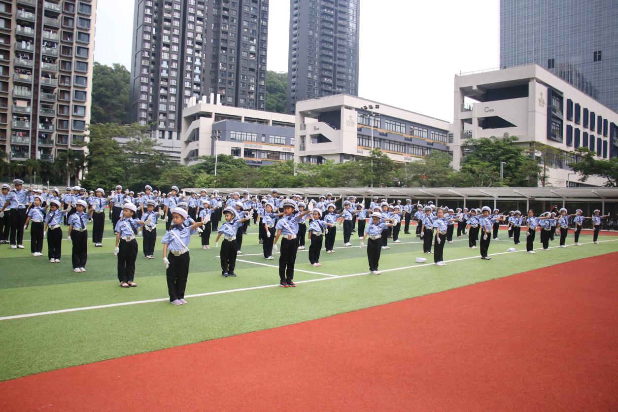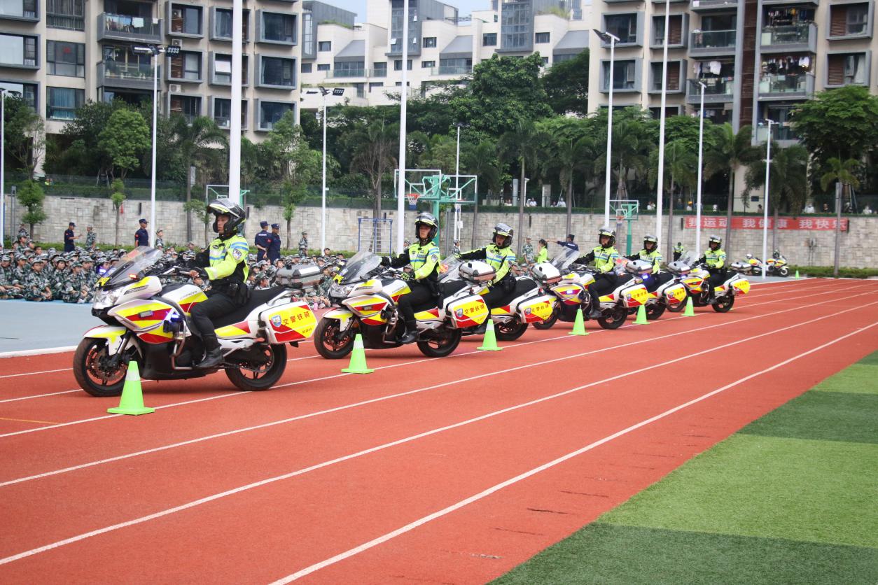 校园里,一个个身着蓝色警服、头戴白色警帽的“广东少年交警队”队员随着音乐做出各种交通手势,帅气、酷炫的铁骑表演让人意犹未尽。