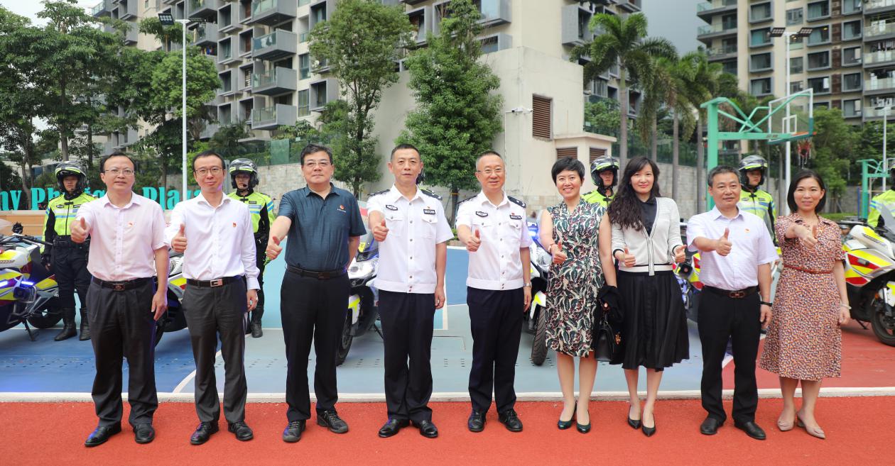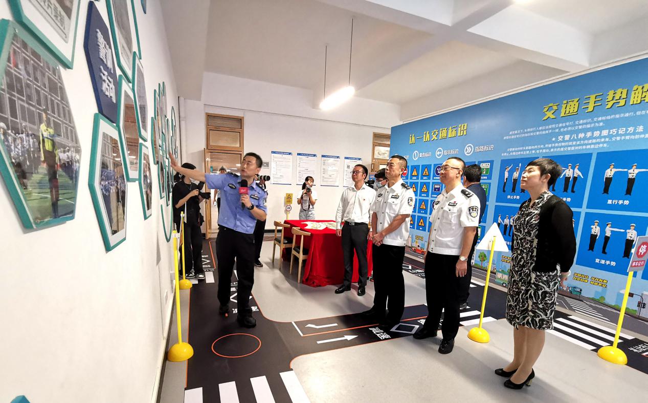 广东省教育厅、广东省公安厅交管局、深圳市教育局、深圳市公安局交通警察局、南山区教育局、中国太保产险深圳分公司共同为“广东少年交警队”(深圳)揭牌,并一起参观了“广东少年交警队”(深圳)活动室。