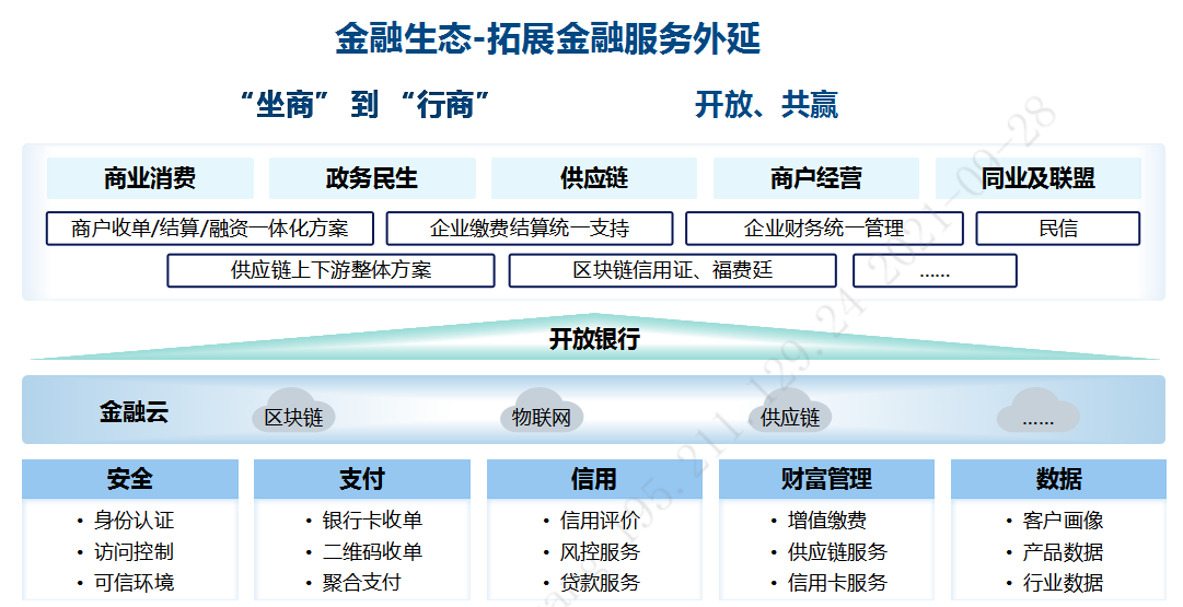 金融生态,旨在打造“BioFaaS科技+金融生态圈”,需要金融企业融入产业链,开放共建,合作共赢。为此,民生银行加快开放银行平台推广,通过API服务、小程序、生态金融云等各种方式,开放产品与服务,不断突破传统金融业务的渠道边界、客户边界、服务边界,助力合作伙伴打造金融服务能力、增强用户黏性,实现互利共赢。