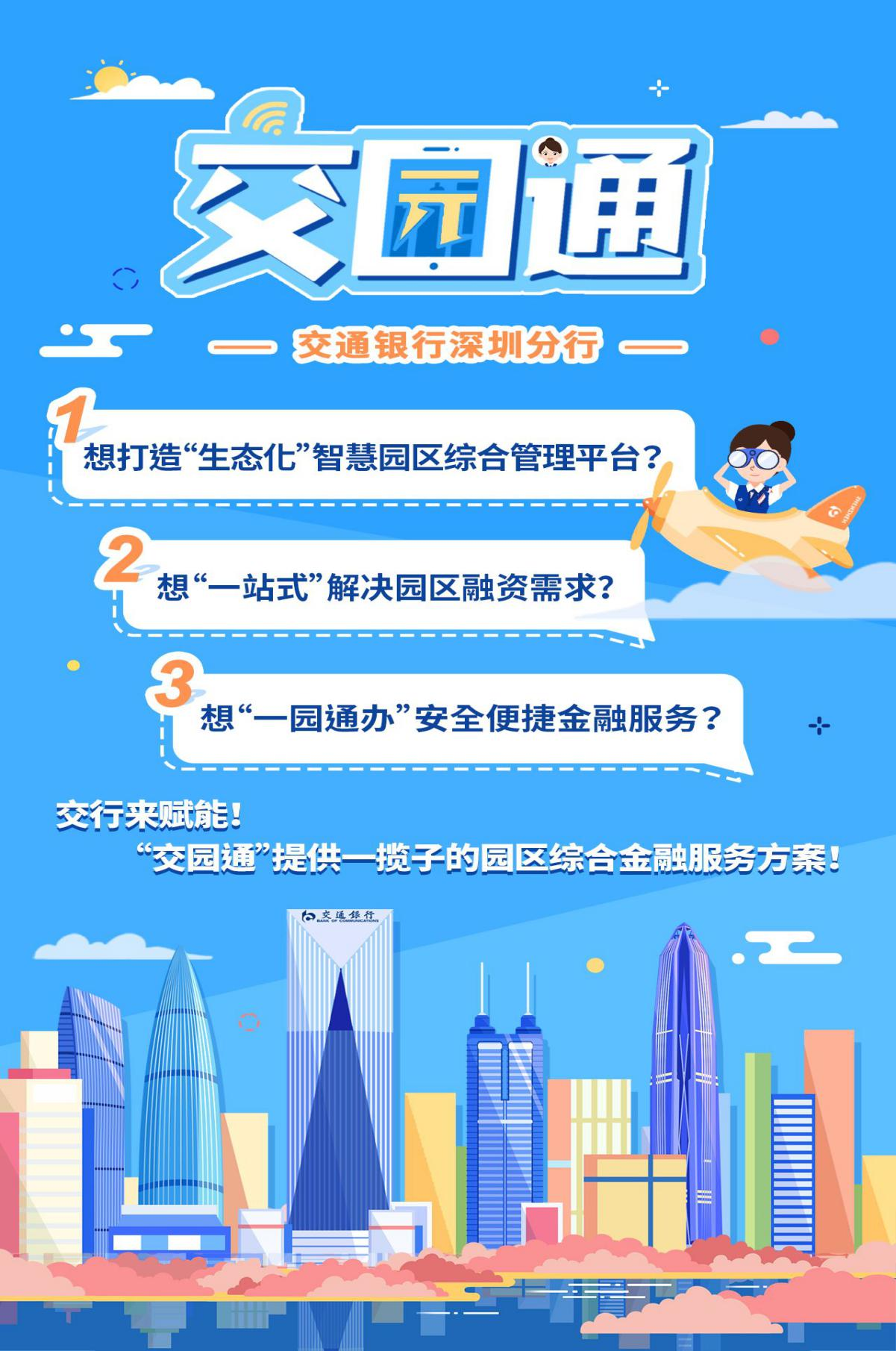 交通银行深圳分行目前拥有60多家营业网点,借助强大的物理网点系统,“交园通”可为园区内的企业和个人提供各类结算和增值服务,打造更加多元化的金融服务场景。