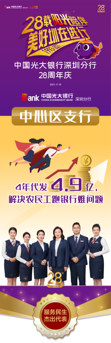 深圳新闻网2021年12月1日讯(记者 朱琳 通讯员 楼蓉 沈婷)时间如白驹过隙,28年,是一个人从蹒跚学步,成长到干事创业的宝贵时光。28年,也是光大银行深圳分行,从播撒种子到收获累累的最美光阴。