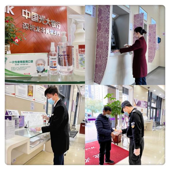 在突出抓好疫情防控的同时,光大银行深圳分行坚持以党建为引领,保障各项工作良好有序推进。各网点厅堂严格入口把控到位、客流控制到位、消毒执行到位;加大对ATM、CRS等自助设备巡检力度,做好24小时不间断后台监测,保障自助设备正常运转,现金供应充足;大力推广网上银行、手机银行等“零接触服务”渠道。针对涉疫企业的信贷业务需求,深圳分行按照特事特办、急事急办原则,简化审批流程,提高贷款办理效率,为客户提供优质高效的综合金融服务。