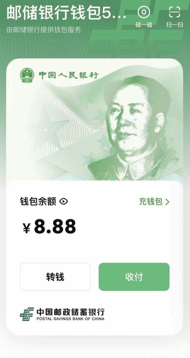 数字人民币APP邮储银行钱包页面示图