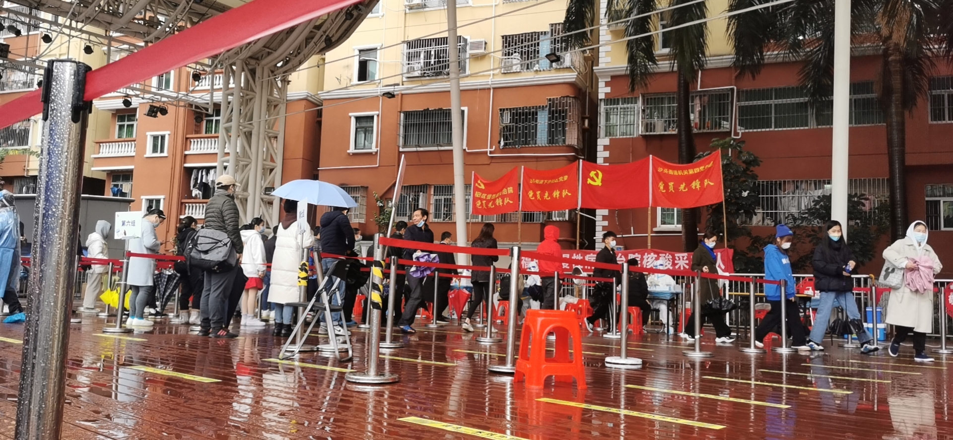 一位现场的社区防疫工作人员表示,这两天深圳再次降温,自己和同事们尽管已经穿了厚厚的防寒服,但是长时间在寒风中工作,手脚都是冰凉。但有不少像光大银行工作人员这样的爱心人士,通过送姜茶等举动,给了防疫工作者暖暖的支持和鼓励。