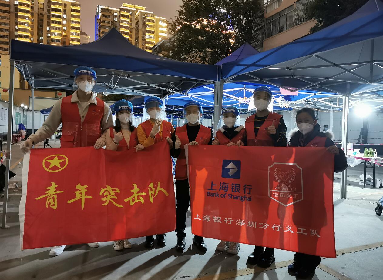 在福田、在罗湖、在宝安、在光明……上海银行深圳分行的党团员和志愿者们牺牲自己的班后时间,放弃对家人的陪伴,活跃在各个服务抗疫的一线现场,他们用最坚决的态度,最果敢的行动,与时间赛跑,助力深圳核酸检测等防控工作的顺利开展,为深圳抗疫工作贡献自己的力量。