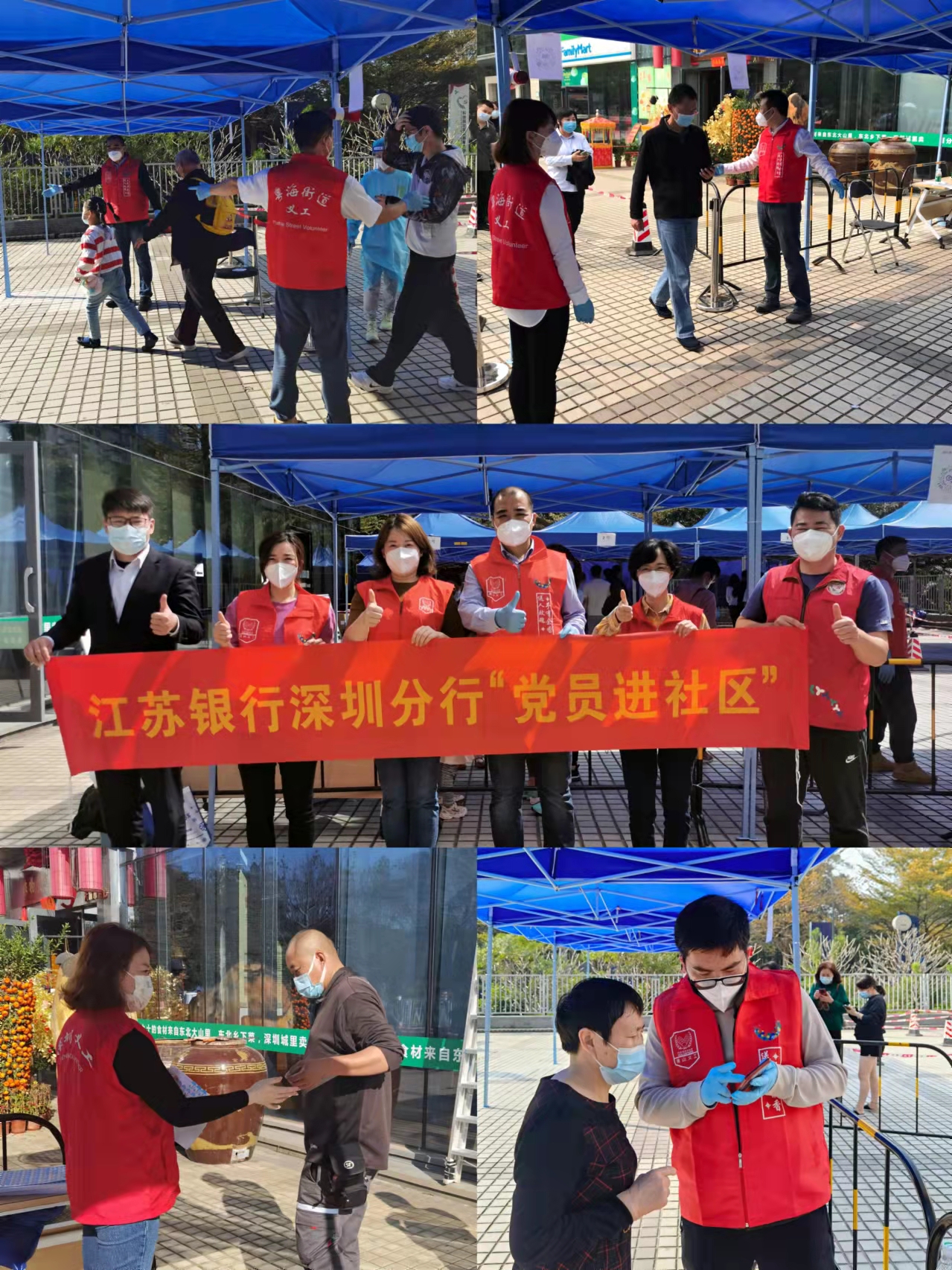 江苏银行深圳分行营业部党支部书记、总经理杨晋国率队赶赴科技园社区检测点,积极响应南山区金融行业协会齐心抗疫号召,协助社区开展核酸检测工作,引导群众有序排队、测温登记、扫码检测。欲酬凌云志,当效逆行人。江苏银行深圳分行党员同志始终与人民群众坚守在一起,齐心协力、迎难而上。