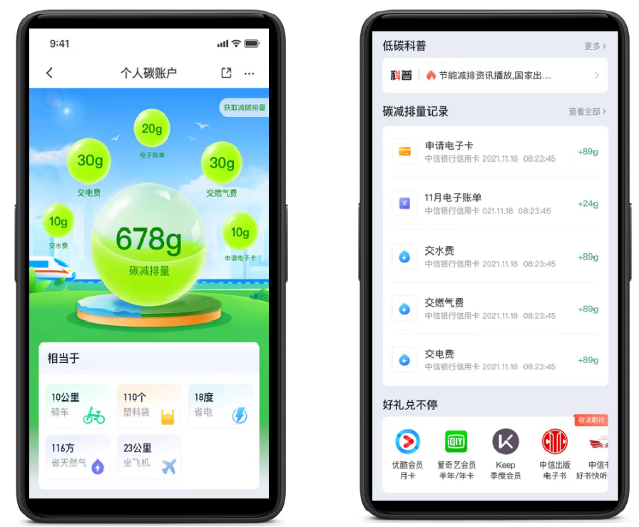 去年11月,深圳市政府印发了《深圳碳普惠体系建设工作方案》,提出立足新发展阶段,以“低碳权益、普惠大众”为核心,具体量化社区家庭、个人节能减碳行为并赋予一定价值,通过低碳行为数据平台与碳交易市场平台互联互通,在形成持久、普遍的绿色生活方式领域先行示范,打造绿色发展的深圳样板。对此,作为扎根深圳发展近二十载的金融机构,中信银行信用卡中心持续发挥创新精神,秉承“绿色银行”的发展新理念,率先升级绿色金融服务,积极推动和倡导绿色美好生活。