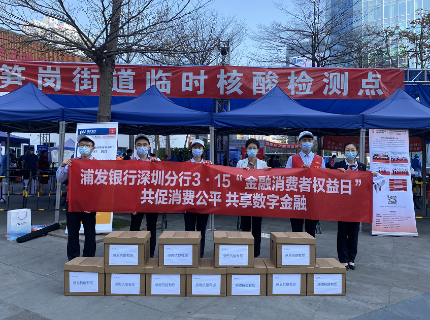 考虑到近期疫情反复,浦发银行深圳分行组织辖内多家网点联合深圳市居民金融素养提升工程办公室、社区工作站,前往核酸检测点,展开“消保”与“抗疫”相结合的“消保防疫关爱站”系列活动。