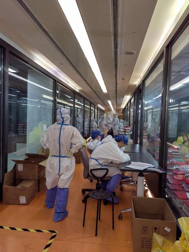 太平人寿上海分公司代理人廖铭和曲欢寿在宝藤核酸检测机构发布招募志愿者时,第一时间报名参加。面对专业检测机构海量的检测标本,两位党员志愿者每天忙着分拣各地送来的标本,装盘,写编码,扫码录入。