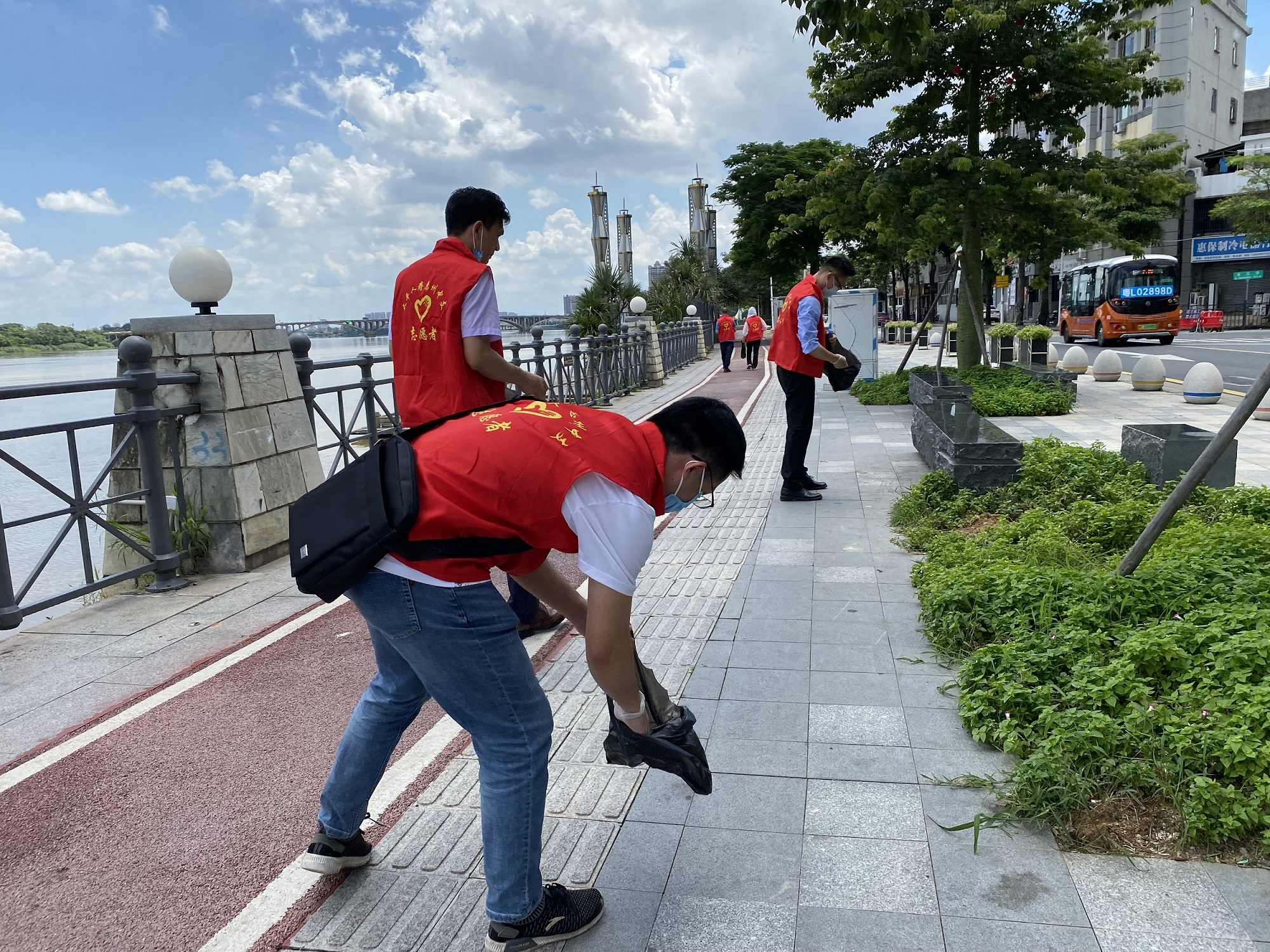 身穿红马甲的太平人在惠州街头“美化”城市道路。(太平人寿供图)