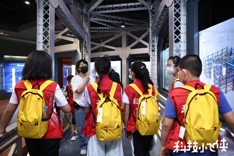 在展馆内,小飞侠们在两位老师的带领下接受研学任务,并跟随两位老师先后对钢结构历史、钢结构科技、钢结构设计、钢结构制造等版块进行学习,进一步认识钢结构建筑的历史发展,学习钢结构科技的相关知识,认识建筑结构与环境之间的关系,加深对钢结构领域相关知识的学习及研究。