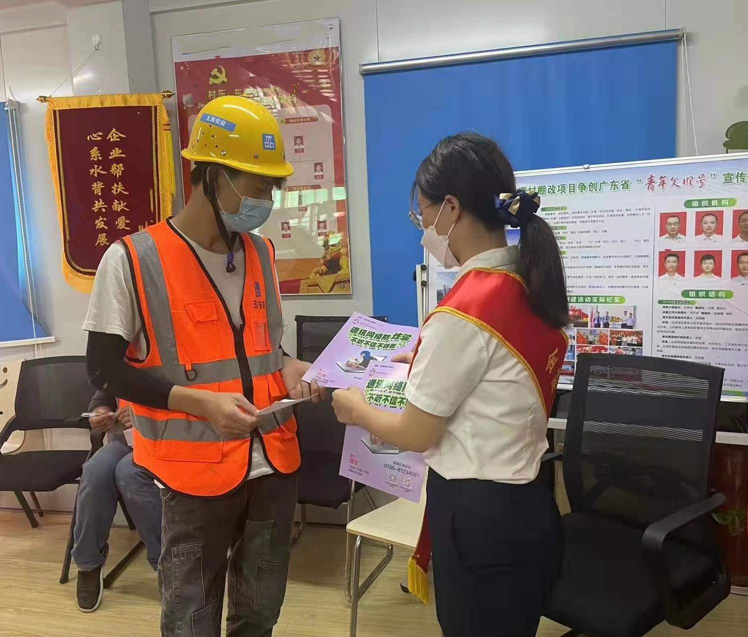 光大银行深圳分行营业部以防范电信诈骗为主题,针对分行营业部周边核酸检测点附近进行核酸检测的群众开展宣传,向现场群众发放了防诈骗宣传折页等宣传材料,并向广大群众讲解防疫重要性和方法。