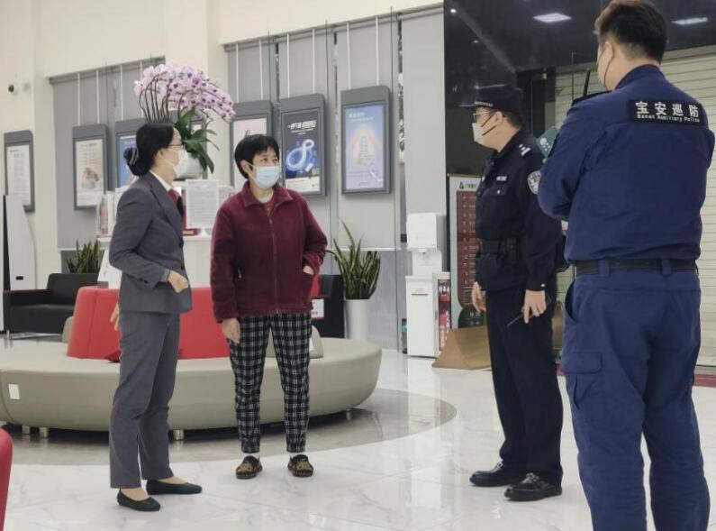 事发当天17时左右,一位老年客户气喘吁吁地走进宝安支行,神色慌张,支行员工田笑竹见状立刻接待,并主动安抚客户情绪。通过询问发现,客户被盗用了个人信息,银行账户可能存在风险。