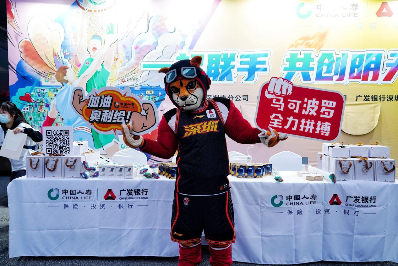 赛场外,广发银行深圳分行、中国人寿深圳分公司、中国人寿财险深圳分公司联合组成的三支小分队一字排开,共同为观众们提供养老金账户、寿险、车险等一系列金融服务咨询,进一步突出了保银协同优势。展位上整整齐齐地摆满了咖啡杯,宇航员小台灯,广发专属运动手环等小礼物,观众们积极参与现场活动抽奖,热闹的氛围吸引了深圳马可波罗队的吉祥物“豹子”前来互动拍照,前来咨询的观众也留下了观赛的美好剪影。