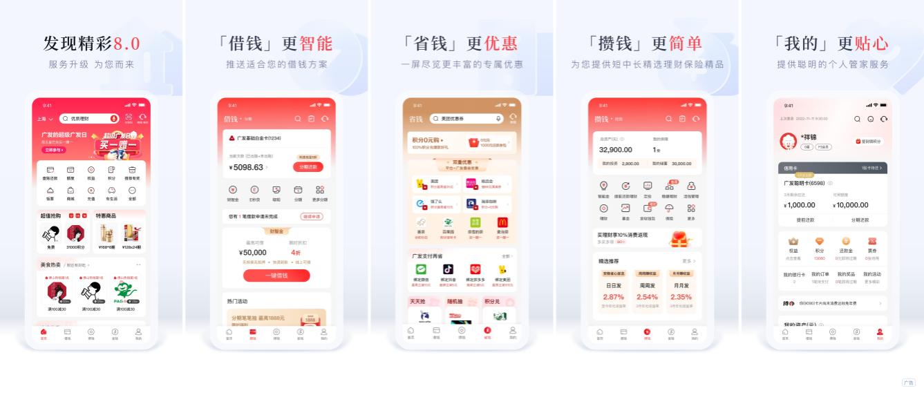 深圳新闻网2023年10月10日讯(记者 朱琳 通讯员 金桥 李华凤)信用卡存量时期,APP成为经营用户的重要渠道之一。近日,广发信用卡以客户需求为中心,对APP进行改版,正式升级到8.0版本。新推出的“发现精彩APP8.0”在“千人千面,极致体验”的经营策略引领下,在功能上更加完善、体验上更加智慧和贴心,为用户提供更加精准、优惠、科技的综合金融服务,为广发卡的千人千面经营进一步优化了数字化基础,让极致体验更加便利和顺畅。