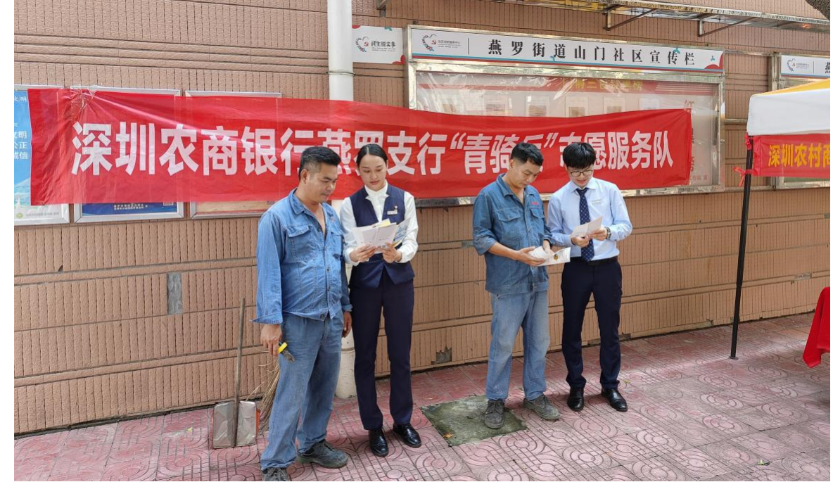 本次“青骑兵”志愿服务系列活动是深圳农商银行深耕普惠金融、践行社会责任的一个侧影。未来,深圳农商银行将继续秉承“以客户为中心”的服务理念,不断丰富和完善“青骑兵”志愿服务的内容与形式,以“青骑兵”志愿服务项目为桥梁,创新金融服务模式,致力于让专业金融知识触手可及、惠及万家,让金融服务成为连接人心、温暖城市的坚实力量。(以上图片由深圳农商银行提供 授权给深圳新闻网使用)