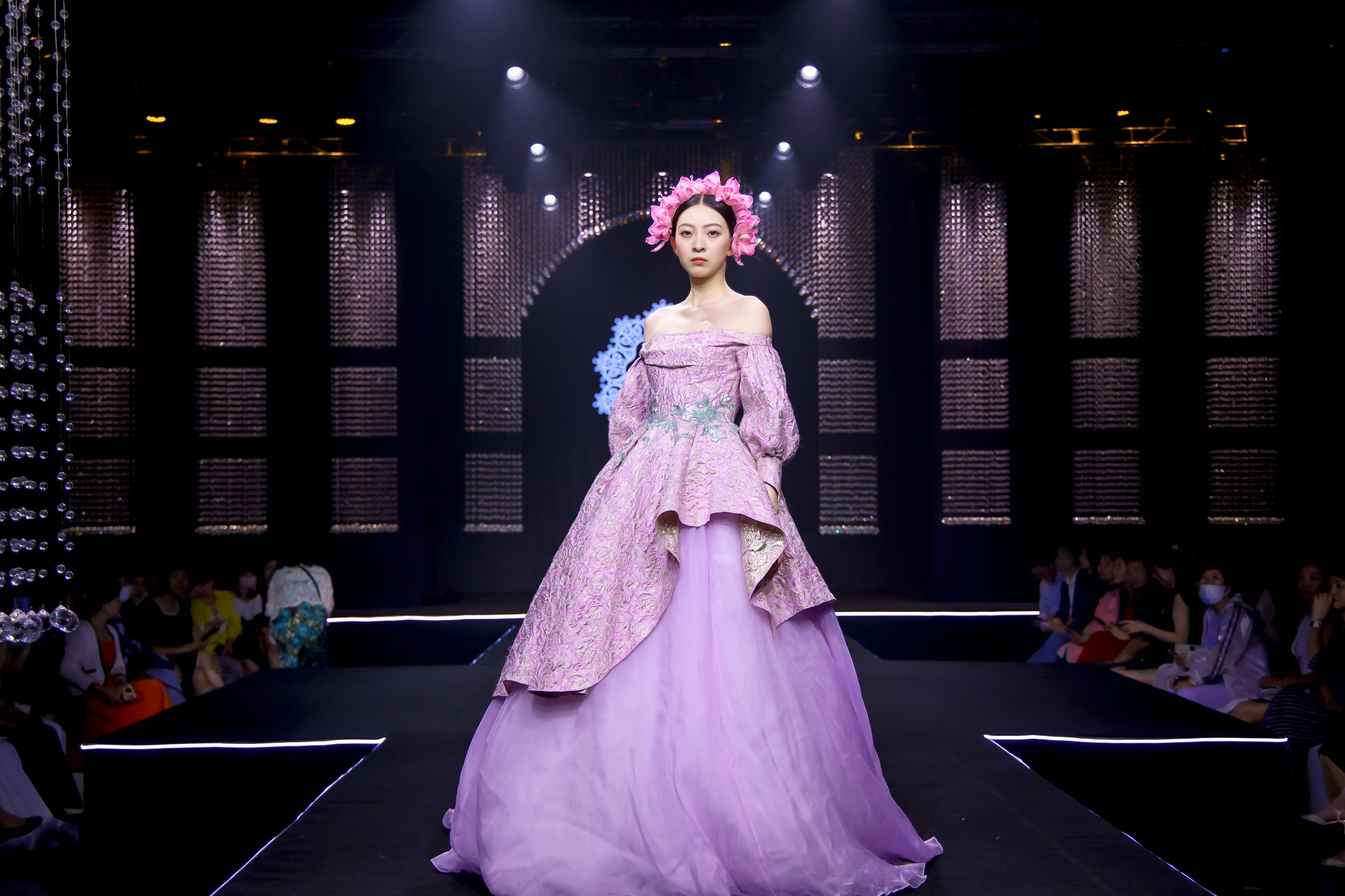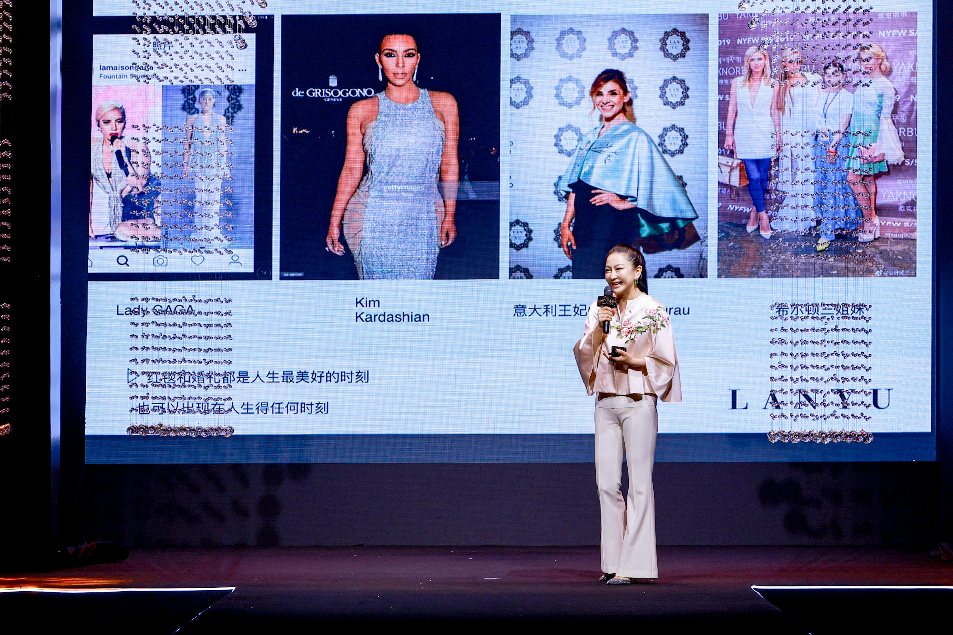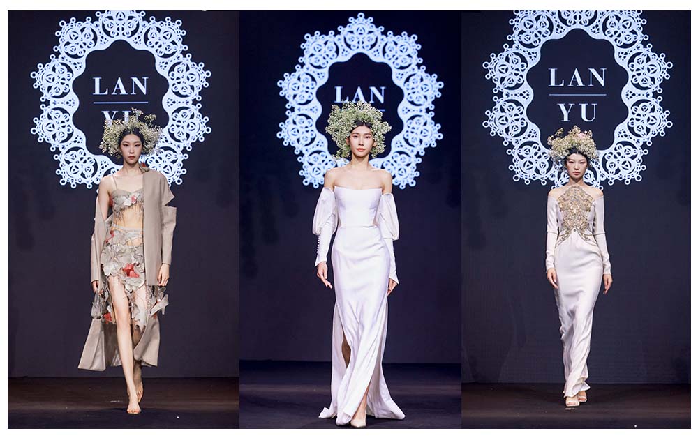 现场更有LANYU高定礼服展示,将中式美学意境与西式时尚剪裁完美融合,同时加重了苏绣非遗元素的应用比例,将更多的非遗技艺融入服饰创作中,呈现出超高艺术水准。