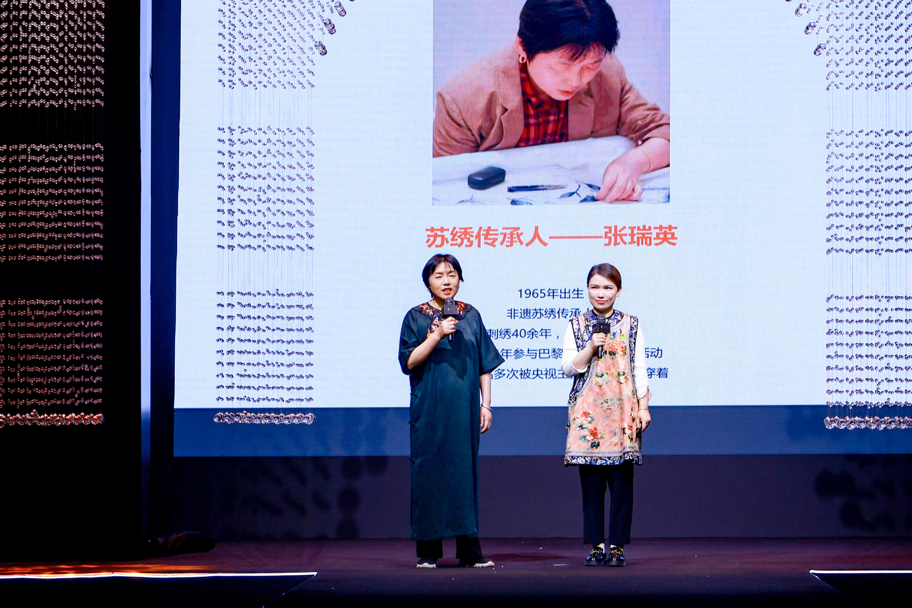 苏绣传人张瑞英现场进行了苏绣文化讲解,让非遗传承技艺再上舞台,将非遗元素运用在当代的生活方式中,展现非遗文化非同寻常的光芒之处,传播非遗重要传承内核,用服装承载国风文化,传递中国风采。当以苏绣手艺复刻的百年服饰再现于秀场,传统技艺真实演绎“经典永流传”,彰显了传承中国文化的手工技艺“奢侈品”含义。