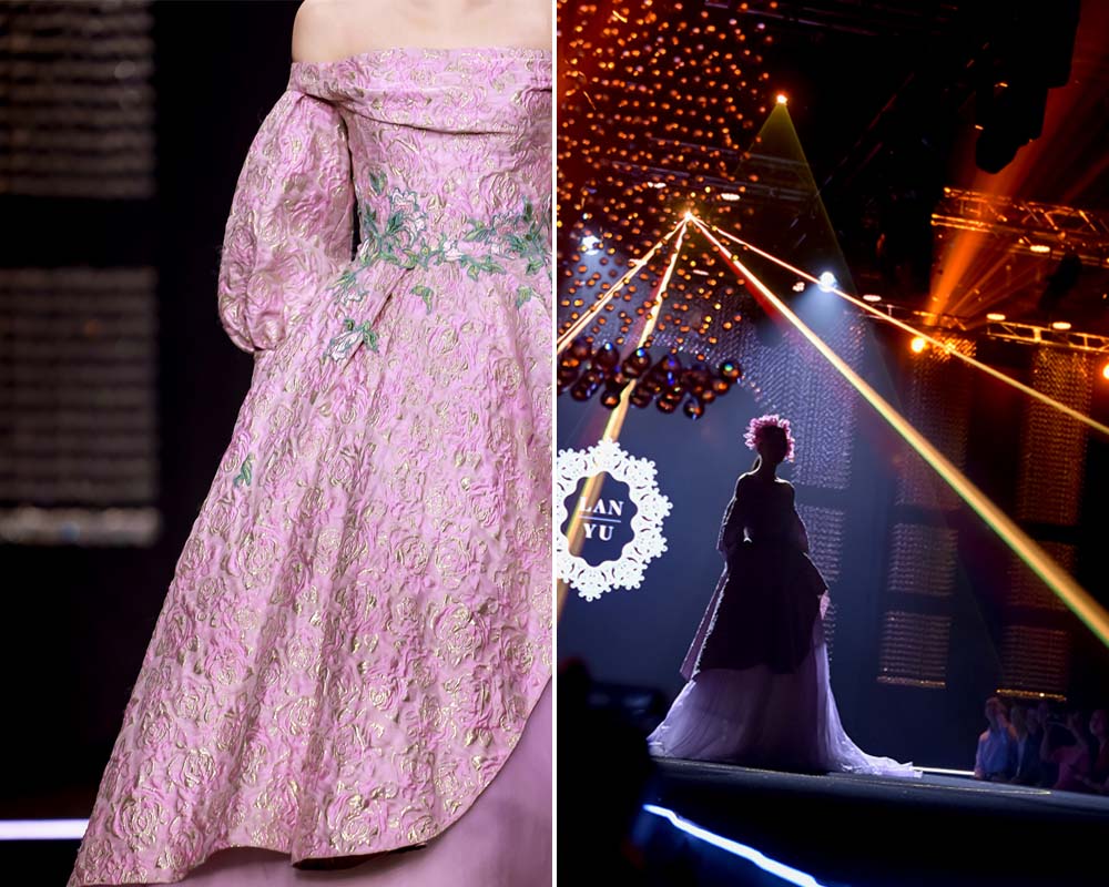 盛典秀场真实还原了巴黎时装周舞台,让观众拥有了极致的感官体验。40余套不同风格的礼服倾情展出设计中如同水墨画恣意挥洒的笔墨,将山河间幽深、清远、缥缈的东方韵味表现得淋漓尽致。