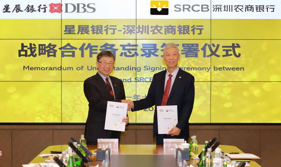 11月3日,深圳农商银行与星展银行在深圳农商银行总部大楼签署战略合作备忘录,深圳农商银行董事长李光安和星展集团中国区总裁葛甘牛等共同出席并见证了签约仪式。