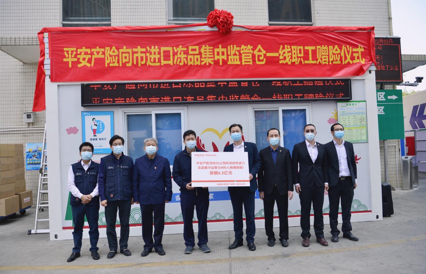 2021年2月3日,平安产险深圳分公司向集中监管仓一线职工捐赠“进口冷链防疫人员综合保险”活动在友信冷冻食品城举行。